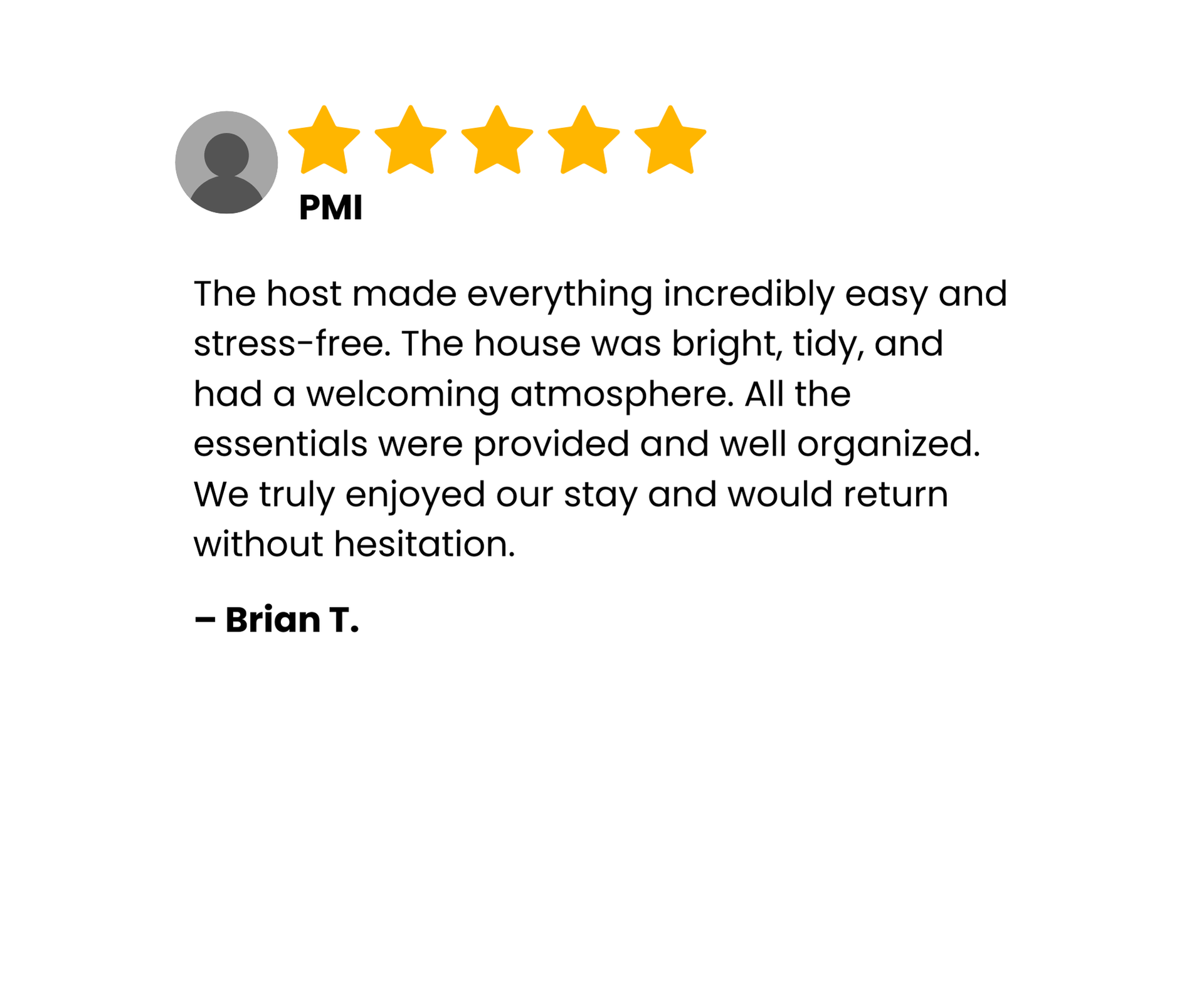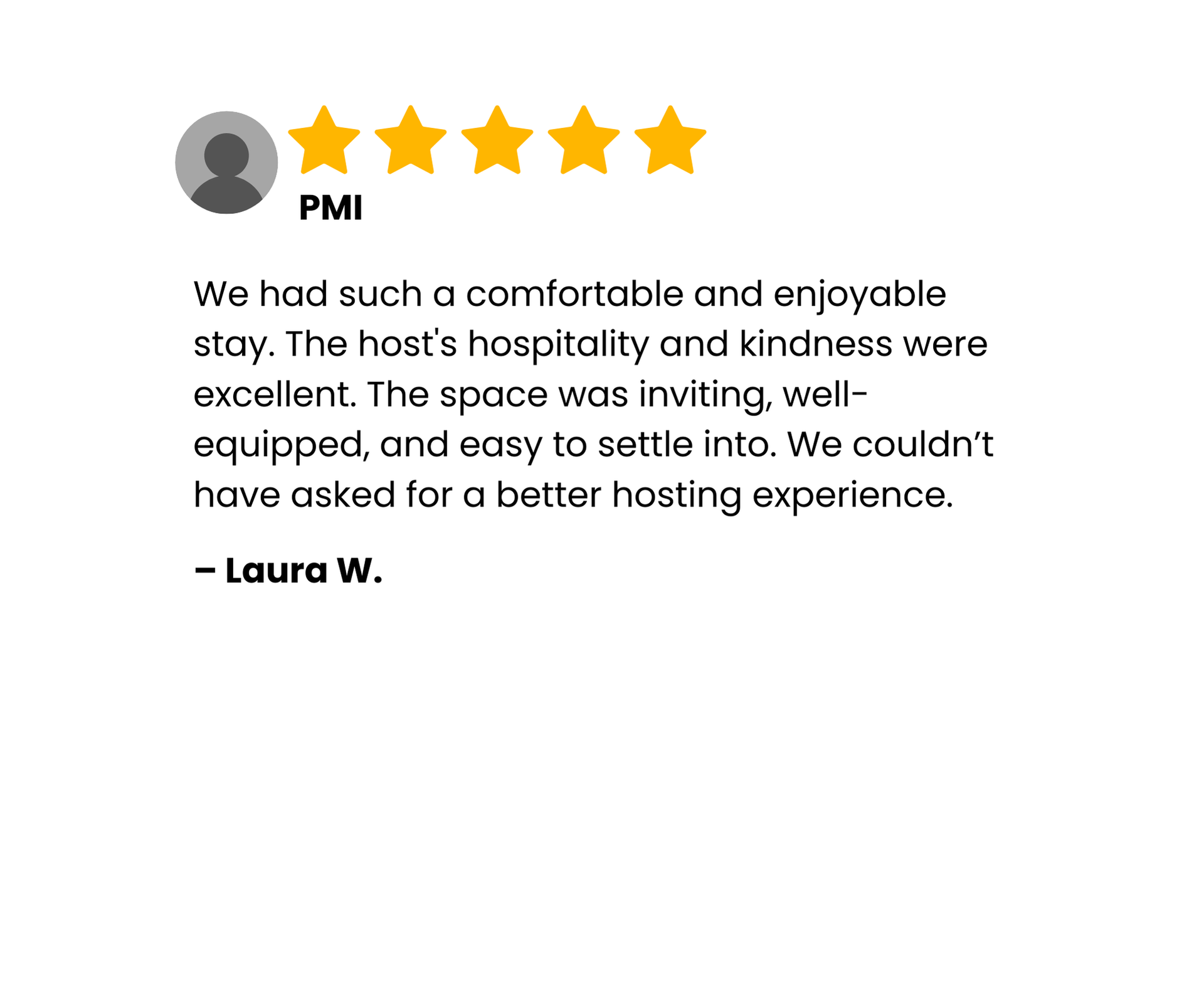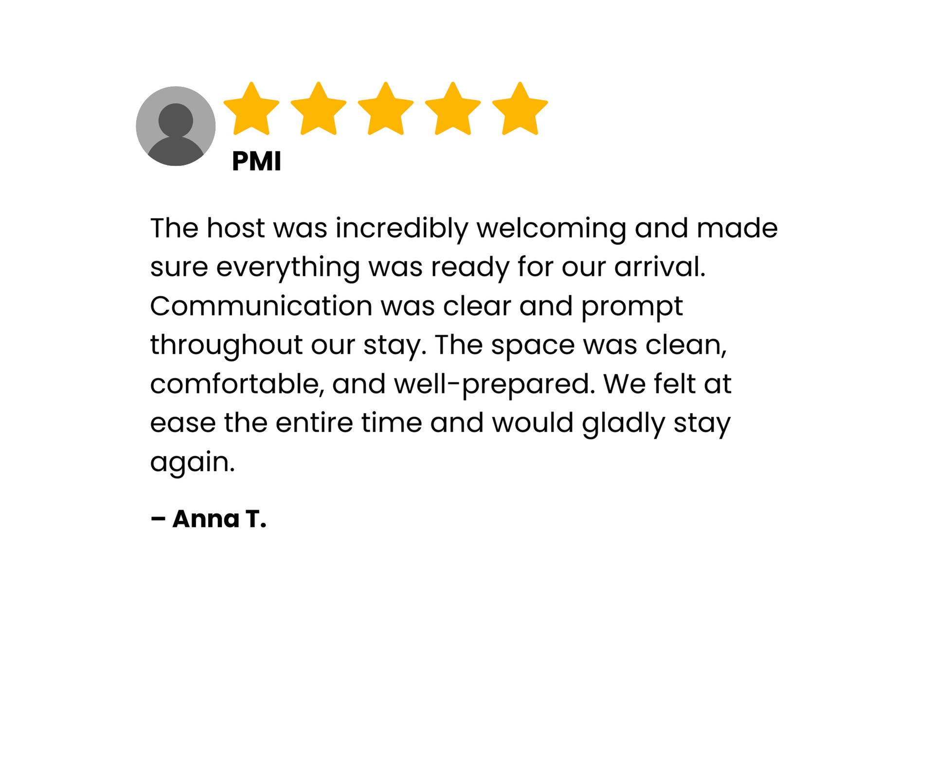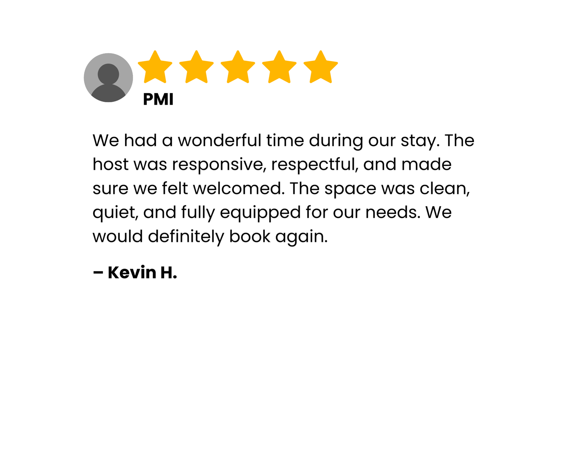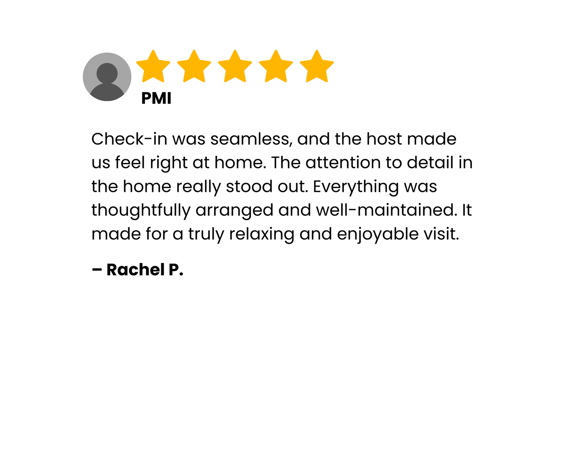 At PMI, we believe every stay should feel like home. That’s why we’re dedicated to creating welcoming, comfortable, and memorable experiences for every guest. With expert local property managers and a commitment to hospitality at our core, we provide a premium guest experience with a personal touch. From booking to departure, we make every step seamless—because at PMI, hospitality isn’t just what we do; it’s who we are.